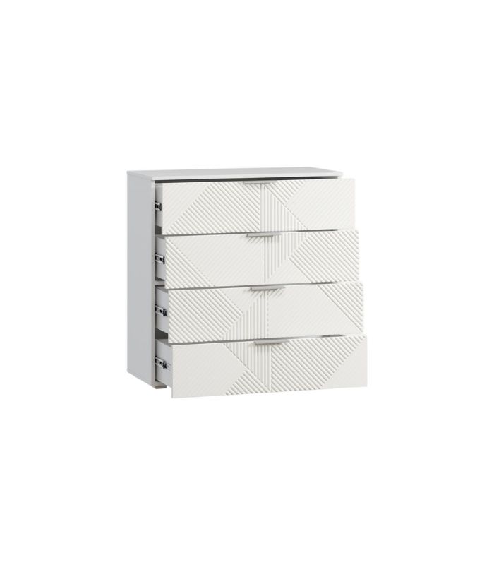 Thiết kế tủ gồm 4 ngăn kéo rộng, giúp bạn sắp xếp quần áo gấp, phụ kiện, tài liệu hay đồ dùng cá nhân một cách gọn gàng và khoa học. Kích thước 92x42x96cm gọn gàng, phù hợp với nhiều không gian từ phòng ngủ, phòng làm việc đến phòng thay đồ. Gam Trắng tinh khôi tạo cảm giác thoáng và sạch, giúp căn phòng sáng hơn và rộng hơn về mặt thị giác.