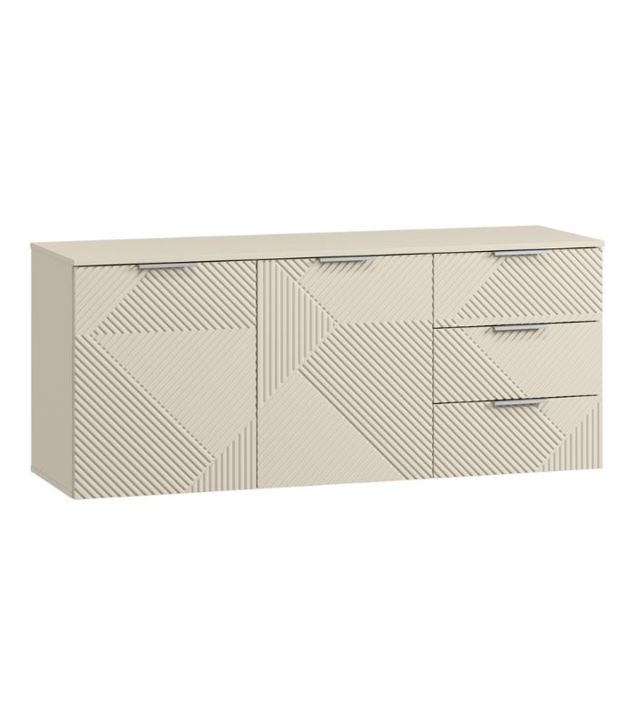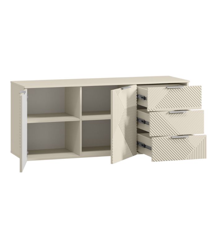 Kích thước 148x46x64cm gọn gàng nhưng vẫn đáp ứng nhu cầu lưu trữ lớn. Thiết kế tủ gồm tủ cánh hai bên trái – giữa và 3 ngăn kéo bên phải vô cùng tiện dụng. Bên trong tủ cánh được chia thành các ngăn kệ khoa học, sắp xếp đồ gấp, hộp, tài liệu hay phụ kiện cực kỳ gọn mắt. Cụm 3 ngăn kéo bên phải hỗ trợ lưu trữ đồ nhỏ nhanh chóng và ngăn nắp. Gam Trắng Kem tạo cảm giác dịu nhẹ, ấm vừa phải và rất dễ phối với các tông nội thất pastel hoặc trung tính.