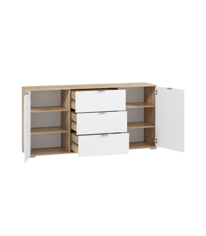 Về công năng, tủ Stella được thiết kế thông minh với ba ngăn kéo rộng rãi và hai ngăn cánh cửa mở hai bên tiện dụng. Bố cục này giúp người dùng dễ dàng phân loại và sắp xếp quần áo, phụ kiện hoặc đồ dùng cá nhân một cách khoa học. Các ngăn kéo vận hành mượt mà, chắc chắn, tạo cảm giác thoải mái khi sử dụng hằng ngày. Thiết kế gọn gàng nhưng chứa được nhiều đồ, phù hợp cho cả không gian trung bình lớn. Đây là lựa chọn tối ưu cho những ai đang tìm kiếm sự đa năng trong một sản phẩm nội thất.