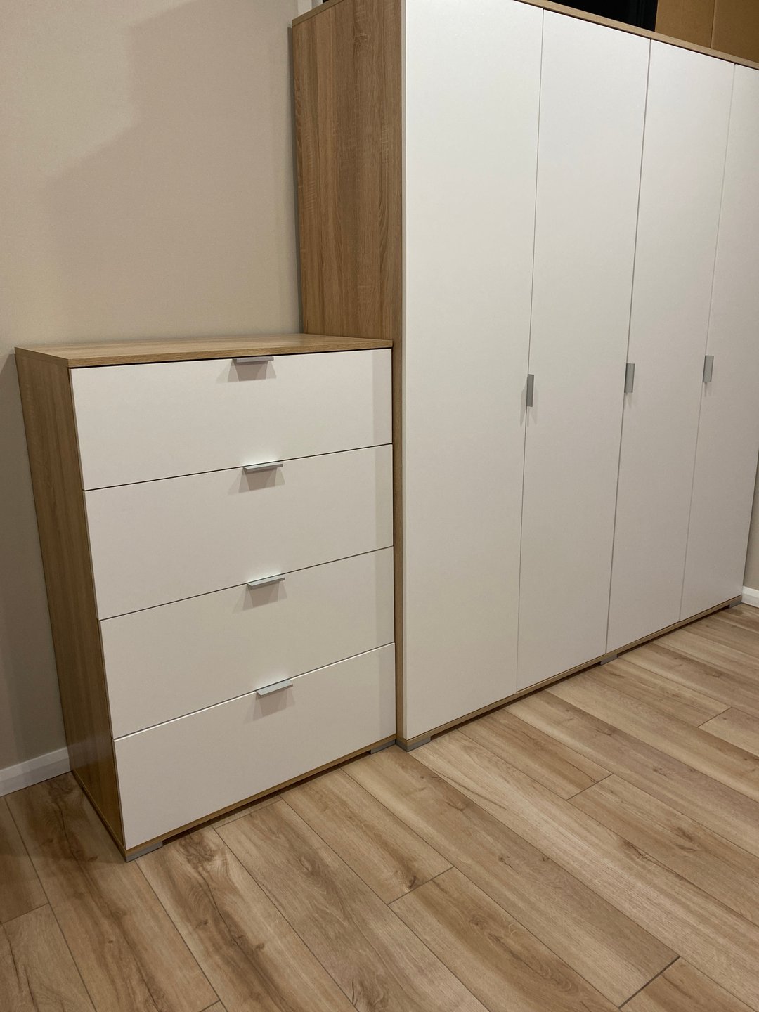 Thiết kế đơn giản nhưng nhìn gọn gàng. Mình thích kiểu vậy. Mua 1 cặp chung với tủ quần áo luôn, dù để lâu kiểu tủ như này cũng hong sợ lỗi thời nè mng