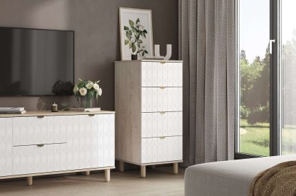 Sở hữu tông trắng tinh khôi, Tủ Ngăn Kéo Tedjons – 1.1 Trắng là lựa chọn hoàn hảo cho những ai yêu thích sự thanh lịch, tinh giản và sáng thoáng trong không gian sống. Màu trắng giúp tủ trở thành điểm nhấn nhẹ nhàng, đồng thời dễ dàng kết hợp cùng các phong cách nội thất khác nhau — từ hiện đại tối giản đến Scandinavian.