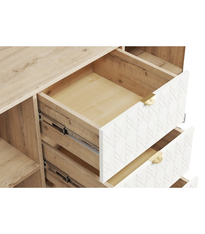 Tủ Ngăn Kéo Tedjons – 2 Trắng mang đến vẻ đẹp thanh khiết và hiện đại cho không gian sống. Tông trắng kết hợp tay nắm vàng kim tạo nên sự tương phản nhẹ nhàng nhưng đầy tinh tế, phù hợp cho mọi phong cách nội thất – từ tối giản đến tân cổ điển.