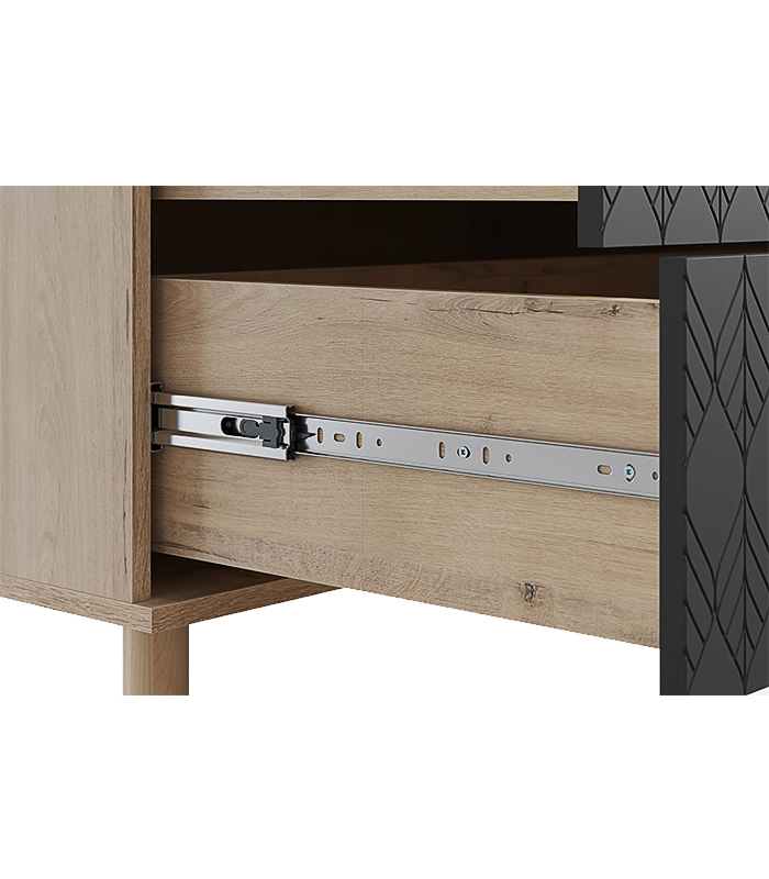 Ray kéo được lựa chọn từ thương hiệu uy tín, cho cảm giác đóng mở êm ái, nhẹ nhàng mà vẫn chắc tay. Mẫu tủ phù hợp để đặt trong phòng ngủ, phòng làm việc hoặc khu vực sinh hoạt chung như một món đồ trang trí tinh tế.