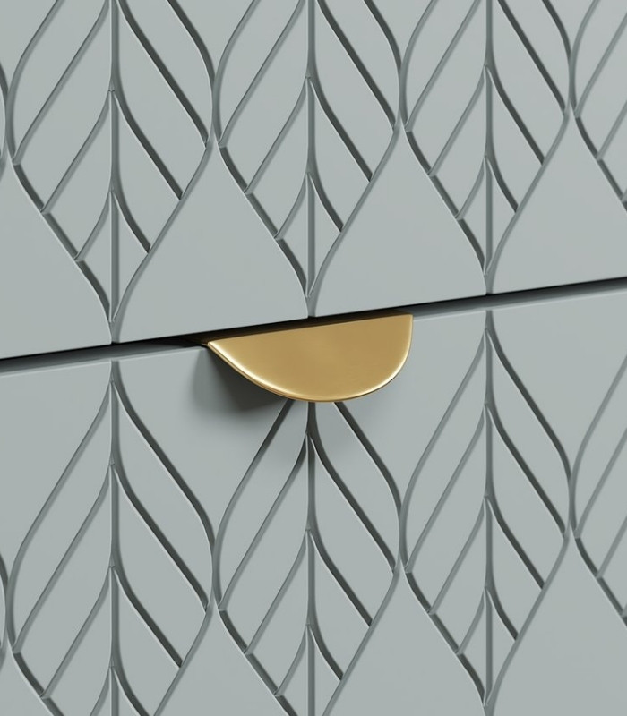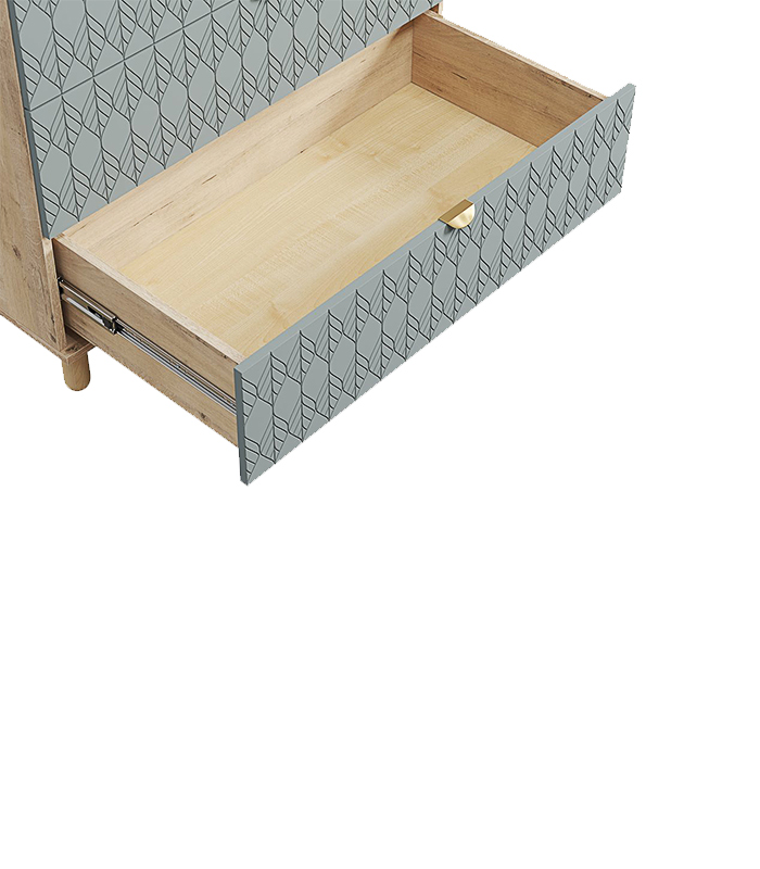 Cấu tạo từ gỗ MDF chống ẩm dày 17mm phủ melamine, kết hợp cánh sơn PU một mặt với hiệu ứng lá đặc trưng, sản phẩm vừa chắc chắn vừa mang nét nghệ thuật. Các góc cạnh được xử lý cẩn thận, dán chỉ kỹ, giúp tủ bền và ít chịu ảnh hưởng bởi thời tiết hay độ ẩm.