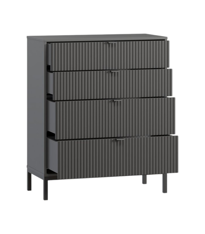 Với kích thước 84x40x102 cm, Travis Xám Chì được thiết kế tỉ lệ cân đối, vừa đảm bảo công năng lưu trữ, vừa giữ được nét thanh thoát trong hình khối. Bốn ngăn kéo bố trí hợp lý mang đến không gian lưu trữ rộng rãi, giúp bạn dễ dàng sắp xếp quần áo, phụ kiện hay vật dụng cá nhân, giữ cho căn phòng luôn gọn gàng và ngăn nắp.