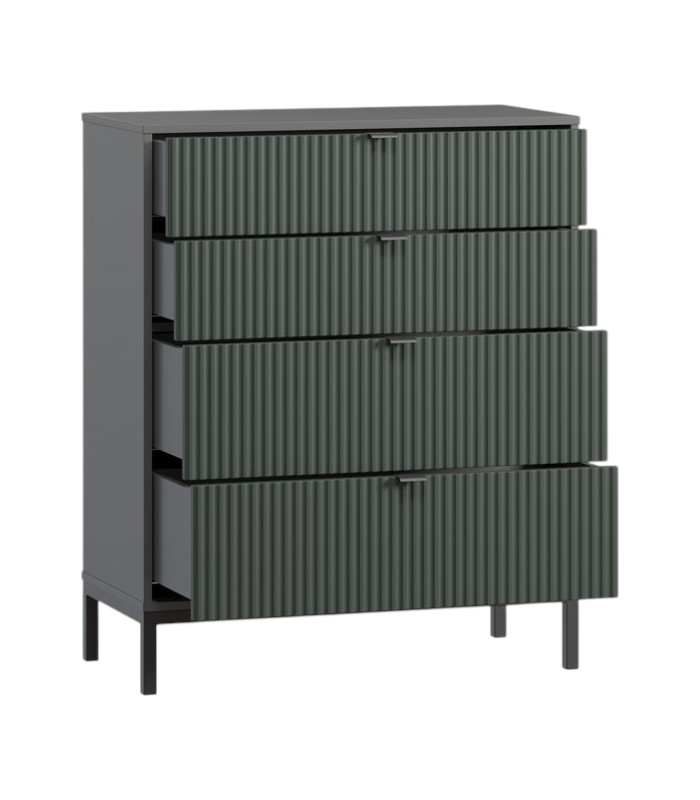 Với kích thước 84x40x102 cm, Travis Xanh Đậm Rừng Nhiệt Đới có thiết kế cân đối và tiện dụng, mang lại khả năng lưu trữ rộng rãi mà không chiếm nhiều diện tích. Bốn ngăn kéo bố trí hợp lý giúp bạn sắp xếp quần áo, phụ kiện và vật dụng cá nhân một cách gọn gàng, mang lại sự ngăn nắp và hài hòa cho không gian.