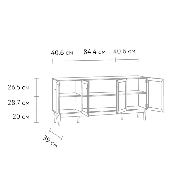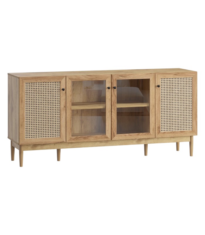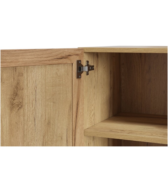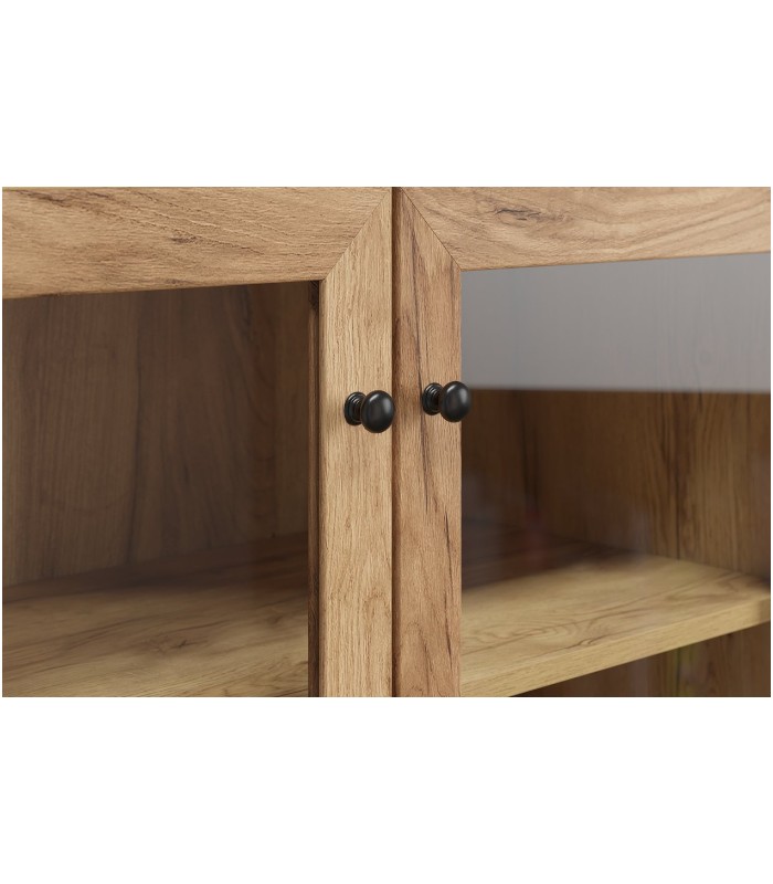 Thiết kế thông minh gồm 2 cánh kính mở ở trung tâm với 2 ngăn rộng rãi bên trong, cho phép trưng bày sách, đồ trang trí hoặc các vật dụng quan trọng; hai bên là 2 cánh mắt cáo chứa 4 ngăn nhỏ, tối ưu hóa khả năng lưu trữ những vật dụng nhỏ gọn một cách khoa học, gọn gàng.