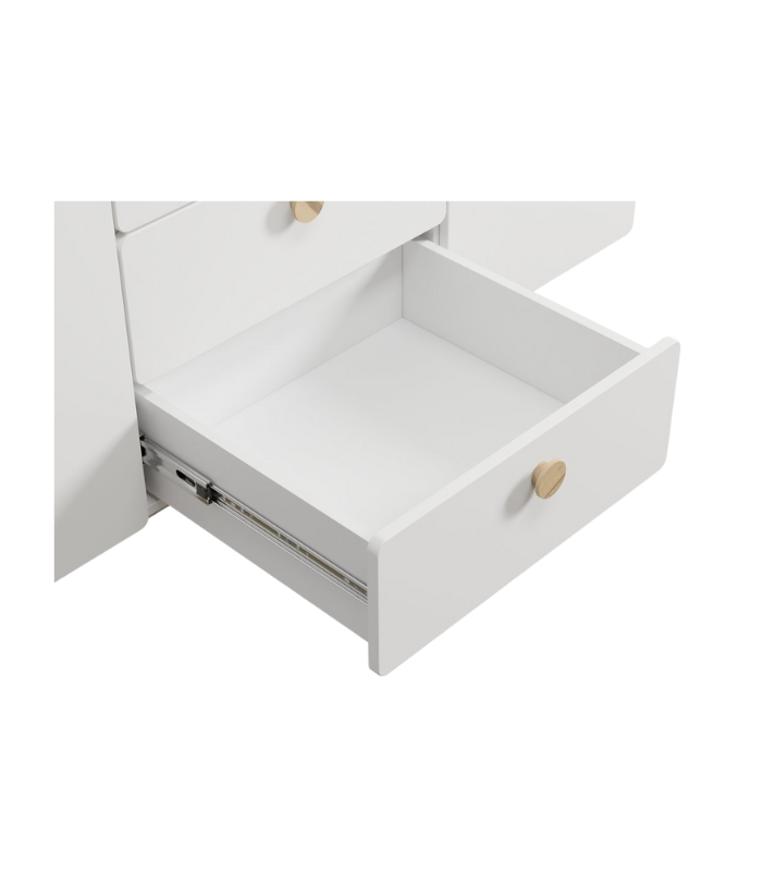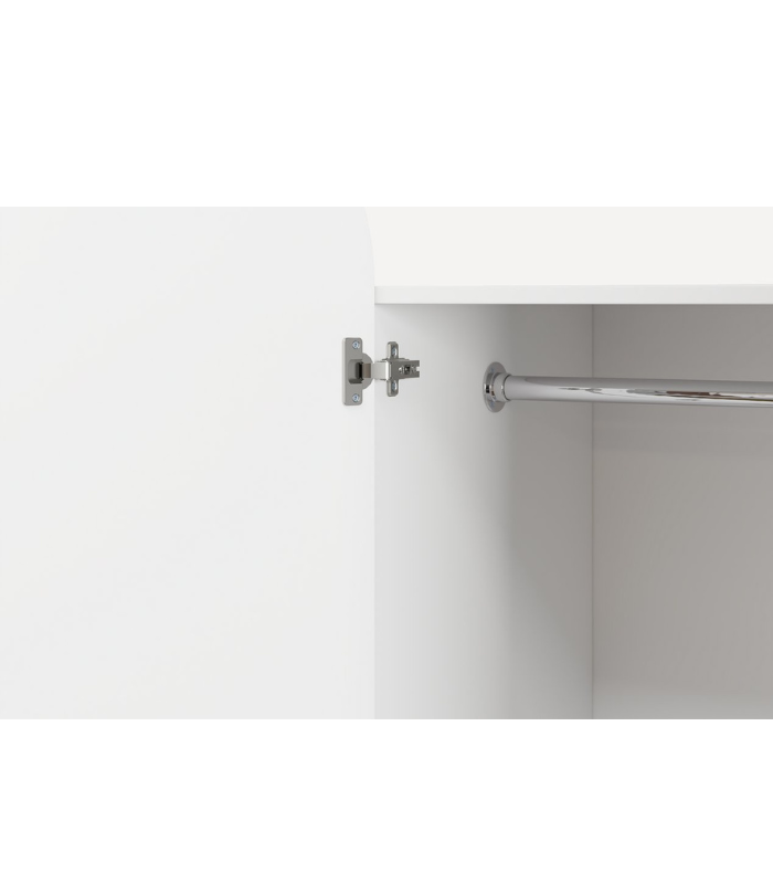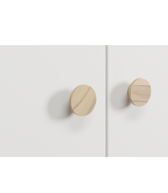 Tủ có kích thước 145 x 52 x 196 cm, thiết kế ba cánh cao rộng, giúp lưu trữ quần áo tiện lợi và gọn gàng. Sản phẩm được làm từ MDF phủ melamine chống ẩm, đảm bảo độ bền và khả năng chống trầy xước tốt. Cánh tủ sơn PU một mặt giúp bề mặt sáng bóng, mịn màng và dễ lau chùi. Màu trắng tinh tế giúp không gian trở nên thoáng đãng, sạch sẽ và hiện đại hơn. Tay nắm gỗ tròn tự nhiên là điểm nhấn nhỏ nhưng tạo nên sự cân đối và ấm áp. Tủ gồm ba ngăn lớn treo đồ và hai ngăn kéo nhỏ phía dưới, đáp ứng nhu cầu lưu trữ đa dạng