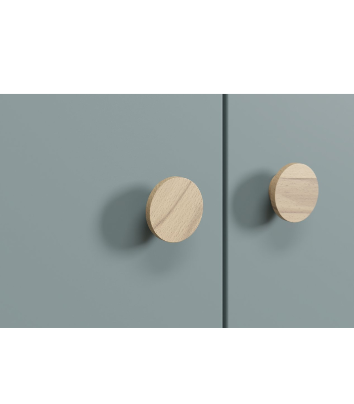 Tủ có kích thước 145 x 52 x 196 cm, thiết kế cao gọn giúp tối ưu diện tích sử dụng. Chất liệu MDF phủ melamine chống ẩm mang lại độ bền cao, chống cong vênh và trầy xước. Cánh tủ sơn PU một mặt cho bề mặt mịn, sáng và bền màu theo thời gian. Gam màu xanh dương nhạt mang đến cảm giác mát mẻ, thư giãn và dễ chịu cho căn phòng. Tay nắm gỗ tròn tự nhiên tạo điểm nhấn tinh tế, giúp tổng thể trở nên hài hòa và gần gũi. Tủ gồm ba cánh lớn để treo và cất quần áo gọn gàng cùng hai ngăn kéo nhỏ phía dưới tiện lợi cho việc lưu trữ phụ kiện