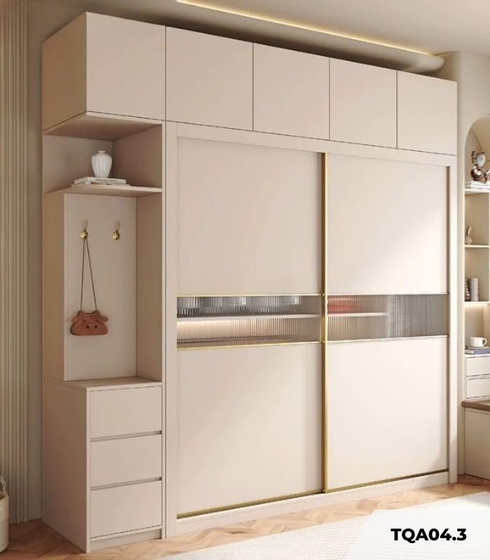 Về phương diện công năng, thiết kế cánh lùa thông minh của Tủ quần áo Cánh Lùa Gỗ kết hợp Khung nhôm Kính sọc trong 160×240 TQA04.3 – Trắng giúp tối ưu hóa diện tích mặt sàn và mang lại sự thuận tiện tối đa hằng ngày. Hệ thống kịch trần giúp tận dụng triệt để khoảng không phía trên để cất giữ các vật dụng ít dùng, giữ cho căn phòng luôn ngăn nắp và khoa học. Bên cạnh các khoang treo rộng rãi, việc tích hợp thêm hệ kệ trang trí và ngăn kéo đa năng bên hông cho phép bạn khéo léo trưng bày những món phụ kiện đắt giá, biến tủ đồ thành một không gian cá nhân đầy đẳng cấp.