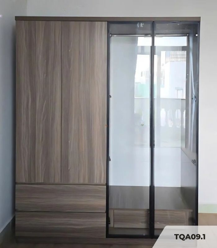 Tủ quần áo Cánh Mở Gỗ kết hợp Khung nhôm Kính màu 180×200 TQA09.2 – Walnut