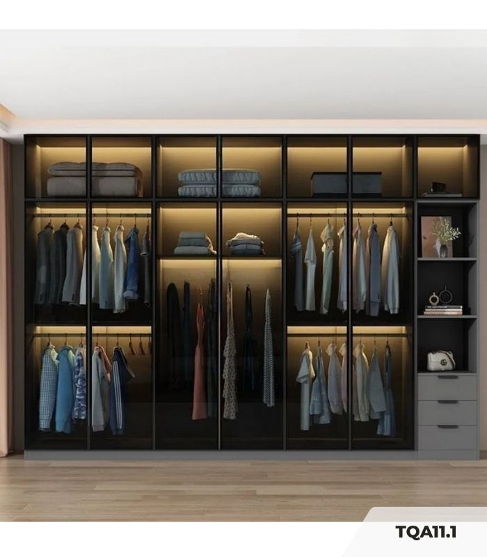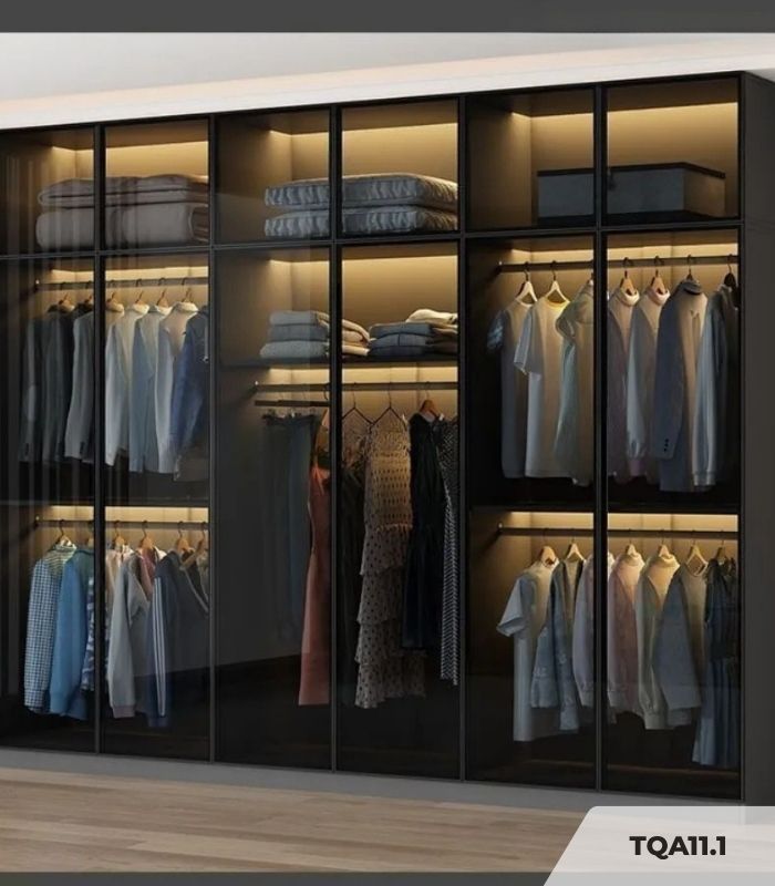 Tủ quần áo Cánh Mở Khung nhôm Kính màu 240×240 TQA11.3 – Graphite