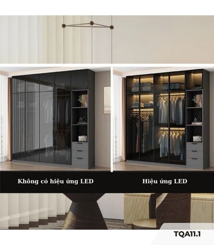 Tủ quần áo Cánh Mở Khung nhôm Kính màu 280×240 TQA11.4 – Graphite