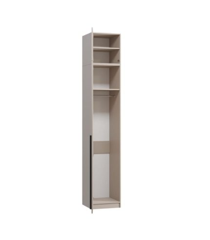 Ngăn trên cao tầm 45cm gồm hai kệ nhỏ, rất tiện để cất chăn mền, túi xách hoặc các vật dụng ít dùng. Phần dưới bố trí thông minh, kết hợp ngăn kệ xếp đồ gọn gàng cùng khu vực treo quần áo rộng rãi, giúp không gian luôn ngăn nắp, dễ tìm. Gam màu cà phê sữa nhã nhặn, mang đến cảm giác ấm cúng, gần gũi nhưng vẫn hiện đại, dễ phối với tường sáng hoặc sàn gỗ. Thiết kế tối giản nhưng tinh tế, phù hợp cho cả phòng ngủ gia đình lẫn căn hộ chung cư.