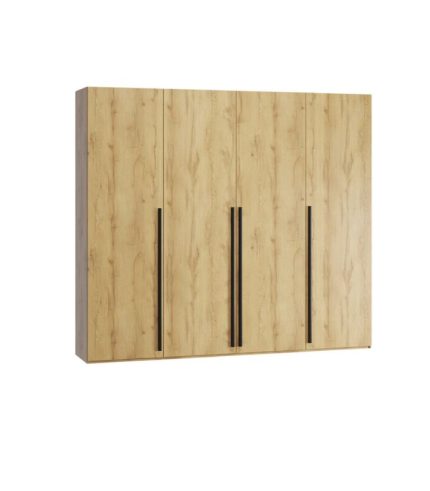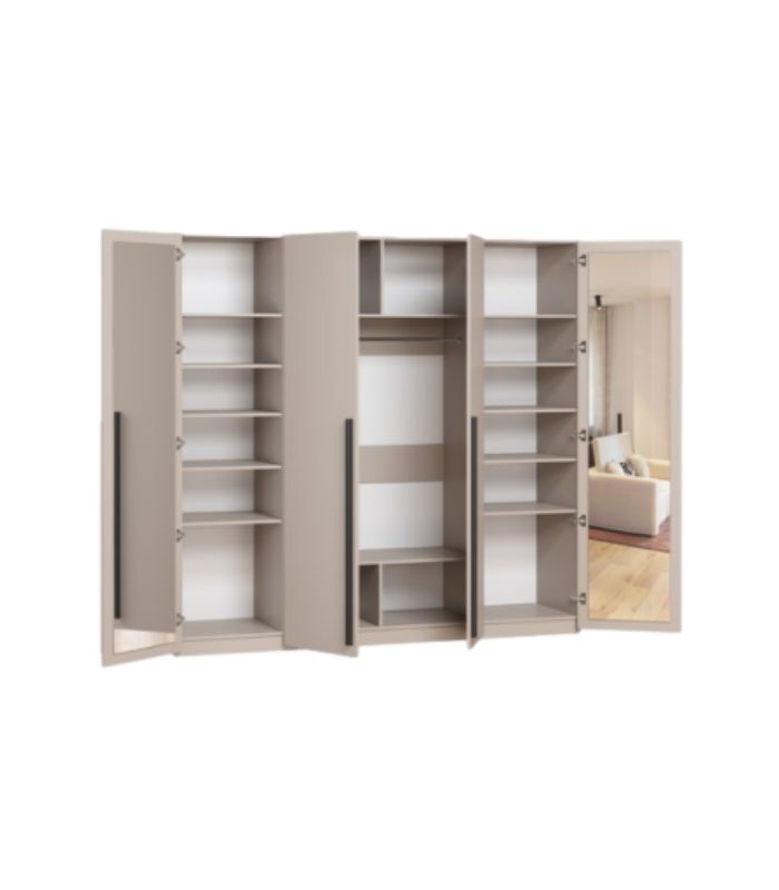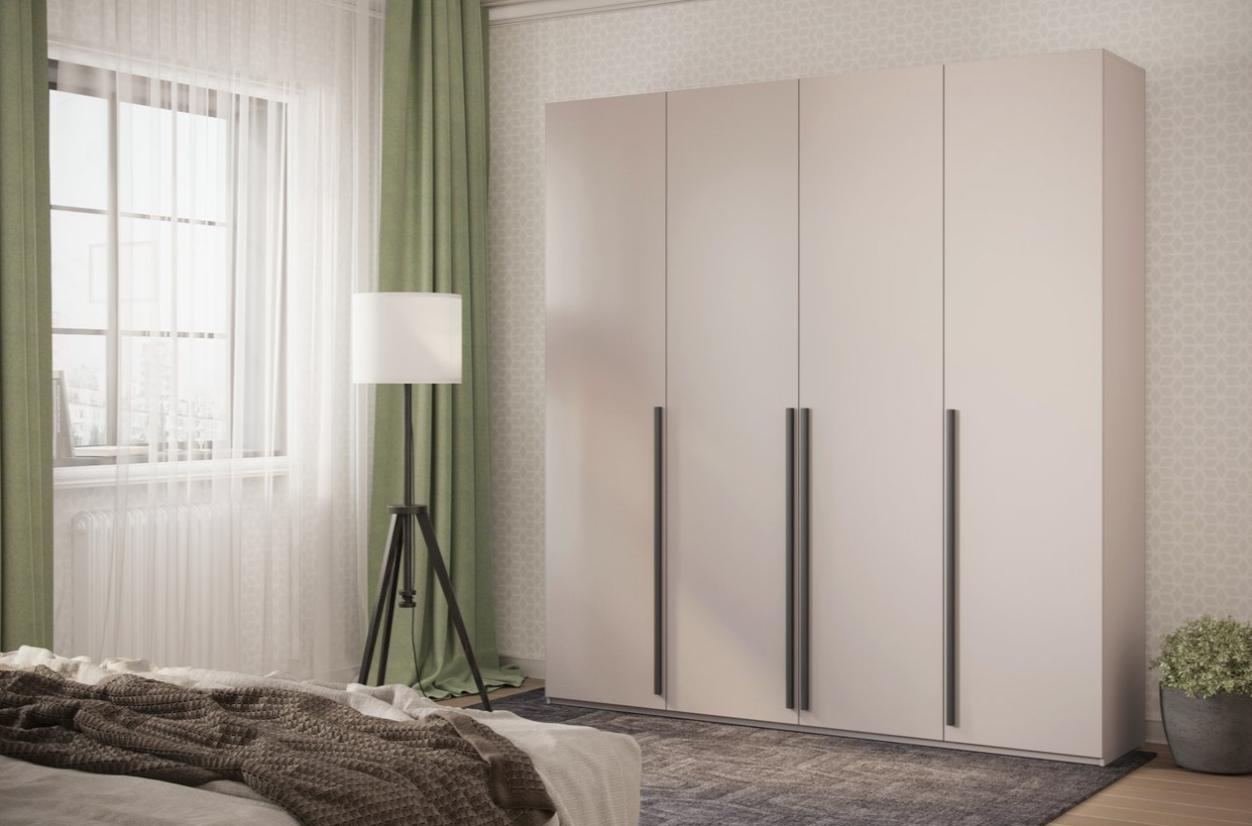 Thiết kế 4 cánh thông minh, tối ưu hóa không gian lưu trữ. Hai cánh ở giữa gồm các kệ nhỏ và khu vực treo quần áo rộng rãi, phù hợp với áo sơ mi, váy, áo khoác dài. Hai cánh còn lại là ngăn kệ đựng đồ, tiện lợi để sắp xếp phụ kiện, quần áo gấp hoặc đồ dùng cá nhân gọn gàng.