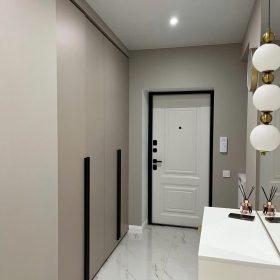 Tay nắm ẩn tinh tế, bản lề giảm chấn giúp mở – đóng nhẹ nhàng, êm ái và bền bỉ theo thời gian. Gam đen nhám sang trọng tạo điểm nhấn mạnh mẽ, phù hợp với nhiều phong cách nội thất hiện đại như Minimalist, Contemporary hay Scandinavian.
