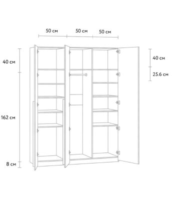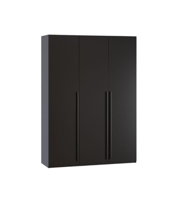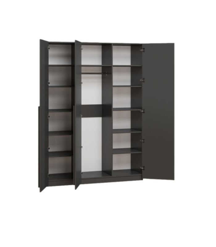 Cấu trúc 3 cánh mở được bố trí khoa học: cánh giữa là khu vực treo đồ rộng rãi, thích hợp cho áo dài, đầm, vest hay áo khoác. Hai cánh bên được chia thành nhiều ngăn kệ nhỏ, hỗ trợ việc phân loại quần áo gấp, phụ kiện, túi xách hay chăn mỏng một cách gọn gàng. Gam màu đen mang đến vẻ đẹp sang trọng, đậm tính hiện đại và cực kỳ dễ phối với các tông gỗ, xám, kem hay trắng trong phòng ngủ.
