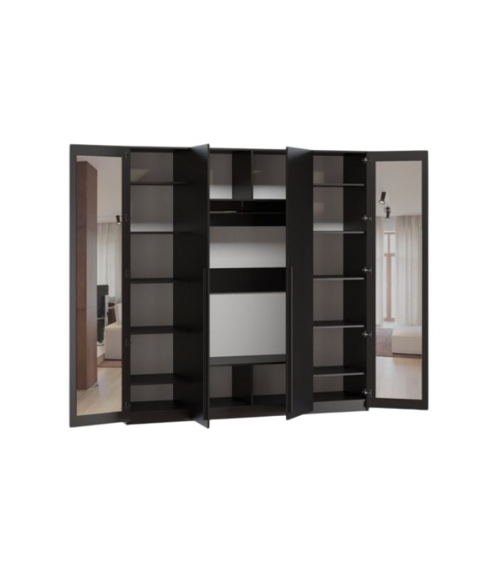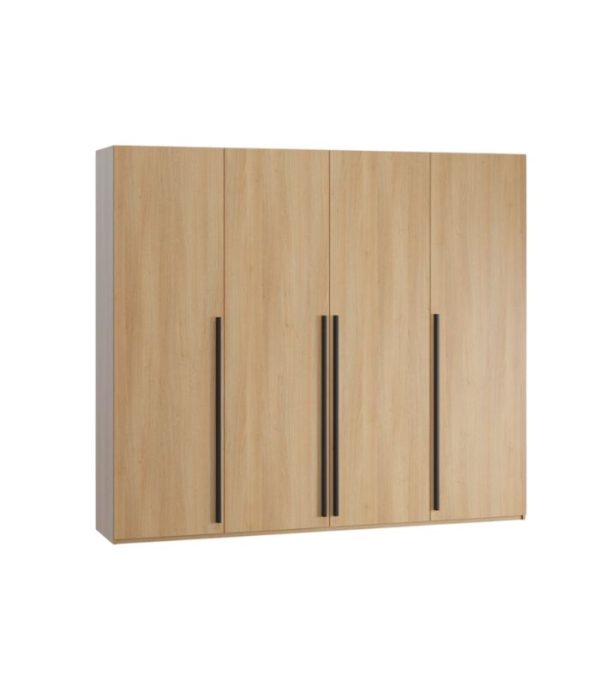 Thiết kế 4 cánh thông minh, tối ưu hóa khả năng lưu trữ. Hai cánh ở giữa gồm các kệ nhỏ và khu vực treo quần áo rộng rãi, phù hợp với mọi loại trang phục từ áo sơ mi, váy đến áo khoác dài. Hai cánh còn lại là ngăn kệ đựng đồ tiện lợi, giúp sắp xếp phụ kiện, quần áo gấp hoặc đồ dùng cá nhân ngăn nắp.