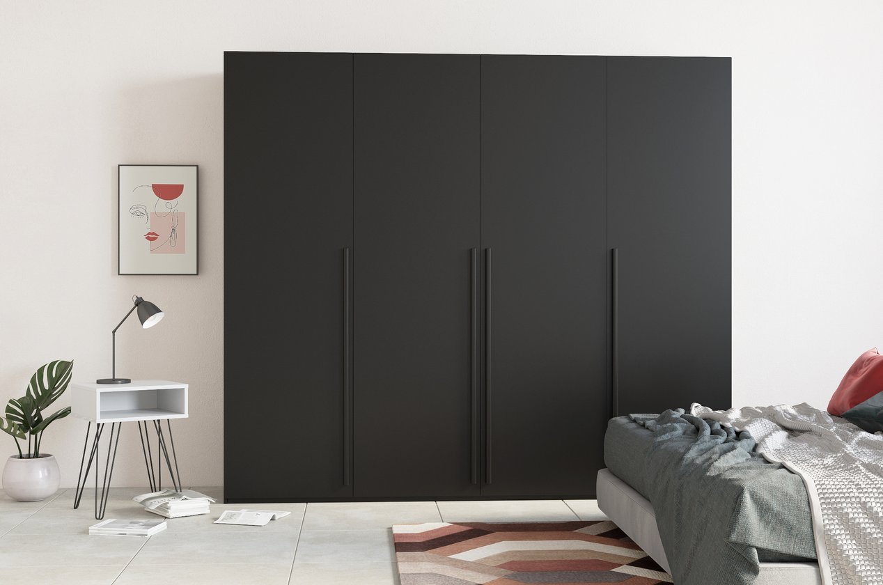 Với kích thước 200x50x210 cm, tủ đáp ứng đầy đủ nhu cầu lưu trữ cho gia đình mà vẫn giữ không gian phòng thoáng đãng. Bề mặt Melamine chống trầy xước, chống thấm, giữ màu đen bền đẹp theo thời gian. Đường nét gọn gàng, hiện đại, tôn lên phong cách sang trọng nhưng vẫn gần gũi.
