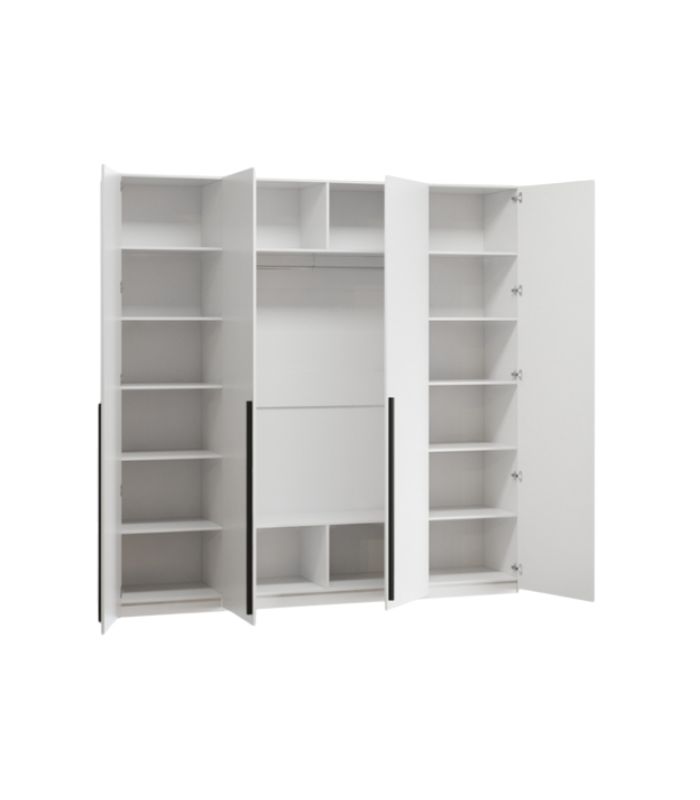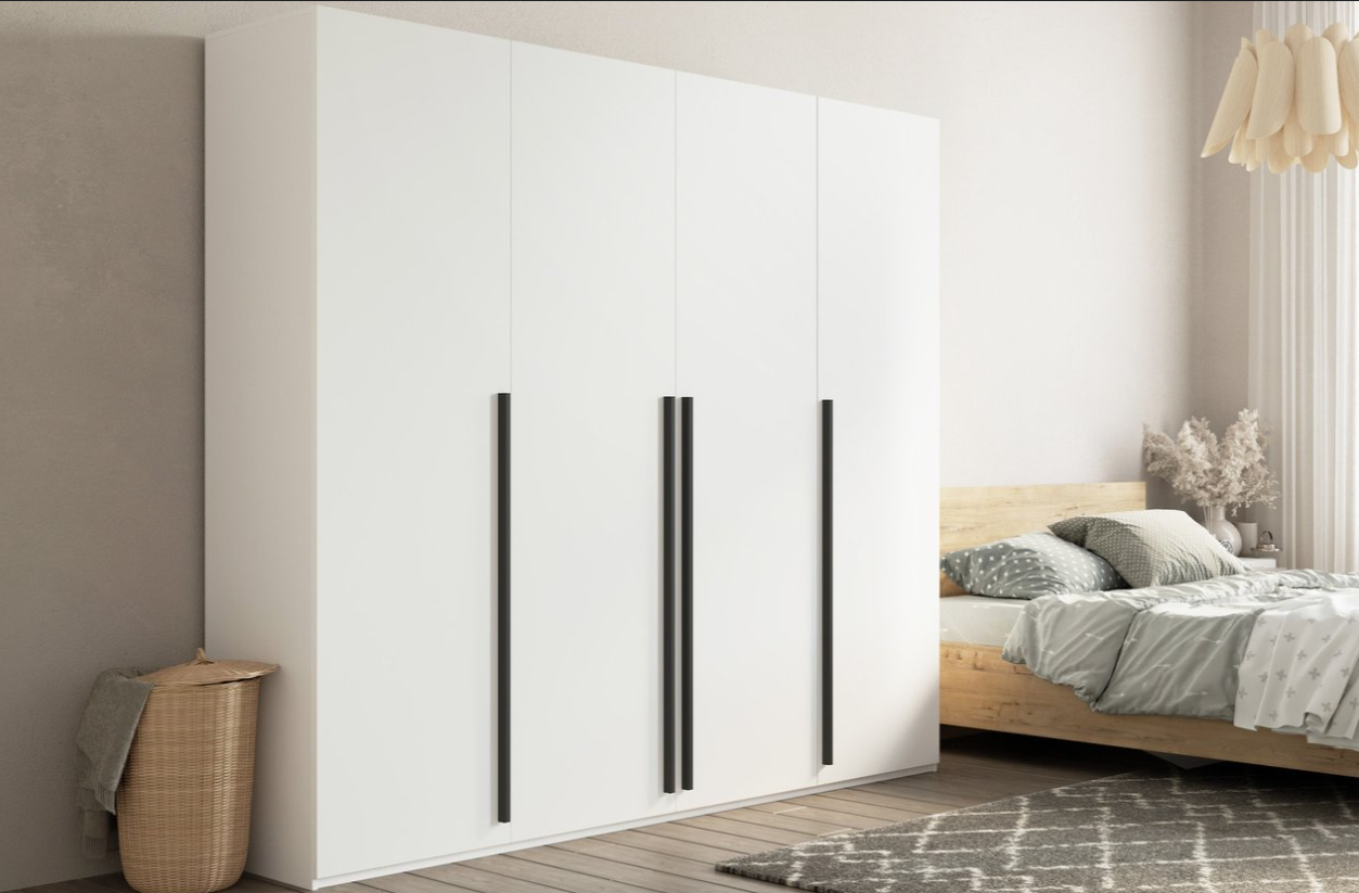 Thiết kế 4 cánh thông minh, tối ưu hóa không gian lưu trữ. Hai cánh giữa gồm kệ nhỏ và khu vực treo quần áo, phù hợp mọi loại trang phục từ áo sơ mi, váy, đến áo khoác dài. Hai cánh còn lại là ngăn kệ đựng đồ, tiện lợi để sắp xếp phụ kiện, quần áo gấp hoặc đồ dùng cá nhân ngăn nắp.