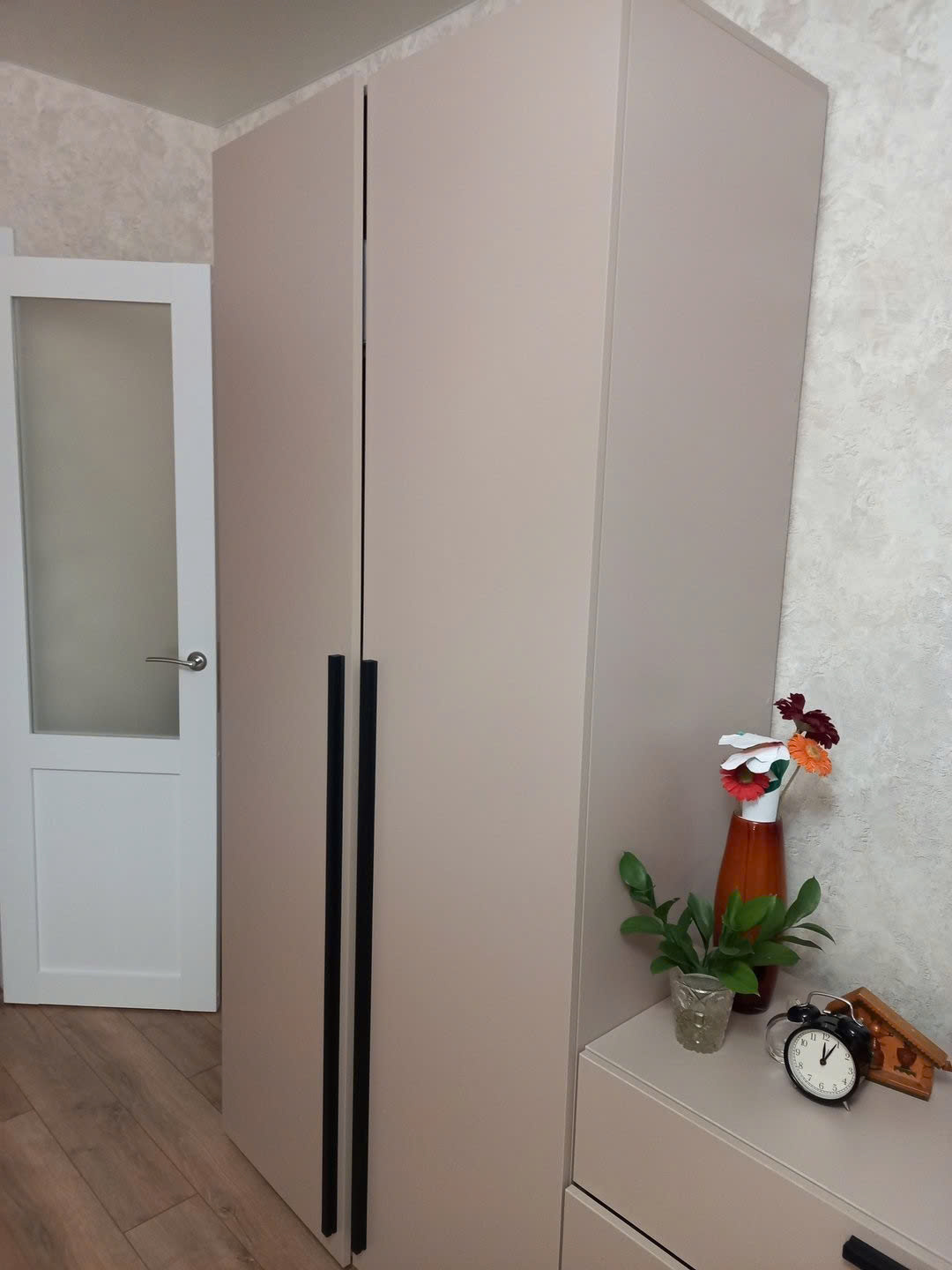 Tủ vân gỗ nhìn rất tự nhiên, đặt trong phòng ngủ thấy ấm và sang hơn hẳn. Nhân viên tư vấn nhiệt tình, thi công nhanh gọn.