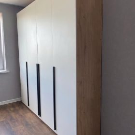 Thiết kế 4 cánh thông minh, tối ưu hóa không gian lưu trữ. Hai cánh giữa gồm kệ nhỏ và khu vực treo quần áo rộng rãi, phù hợp với mọi loại trang phục từ áo sơ mi, váy đến áo khoác dài. Hai cánh còn lại là ngăn kệ đựng đồ, tiện lợi để sắp xếp phụ kiện, quần áo gấp hoặc đồ dùng cá nhân ngăn nắp.