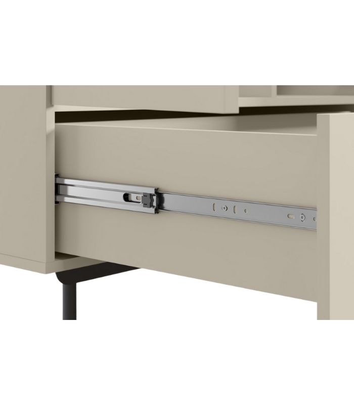 Vật liệu MDF phủ melamine chống ẩm mang lại độ bền cao và khả năng chịu môi trường tốt. Cánh tủ sơn PU một mặt giữ bề mặt luôn sáng và mịn, không bám bụi nhiều và dễ vệ sinh. Thiết kế tay nắm liền thân tối giản giúp tổng thể gọn gàng và sang trọng.