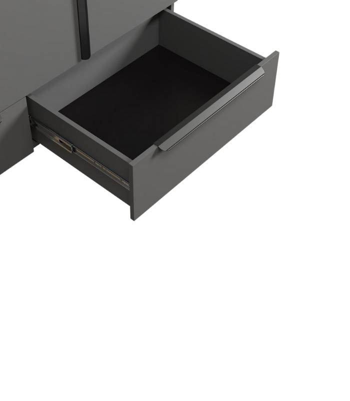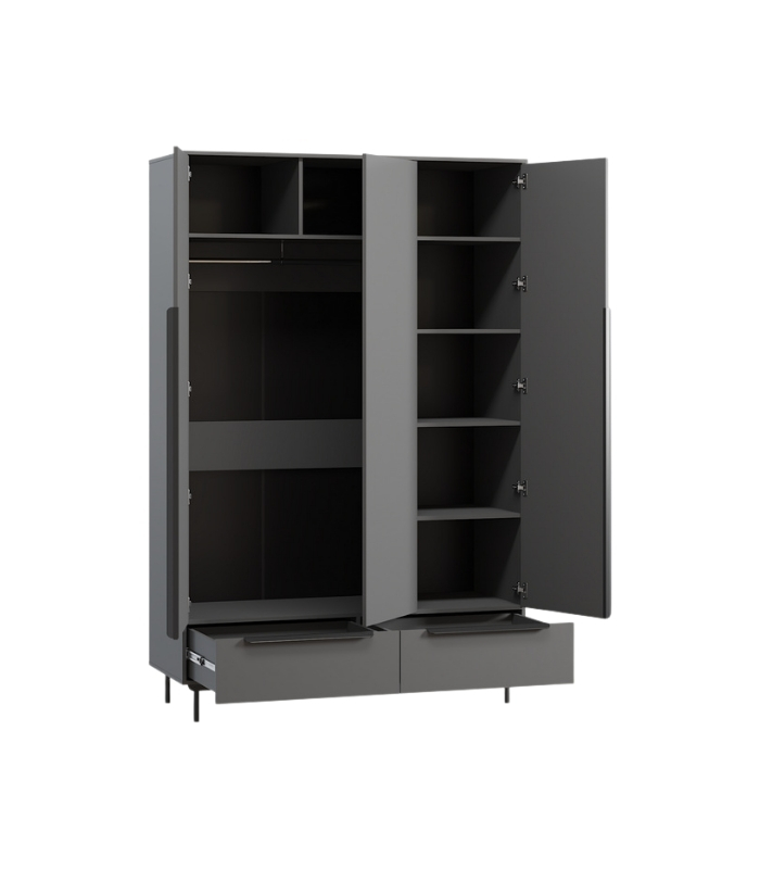 Kích thước 144 x 55 x 220 cm phù hợp với nhiều kiểu phòng, đặc biệt là những không gian thích sự gọn gàng và hiện đại. Tông xám chì cũng rất dễ phối với các gam gỗ, đen, trắng hoặc các vật liệu kim loại.