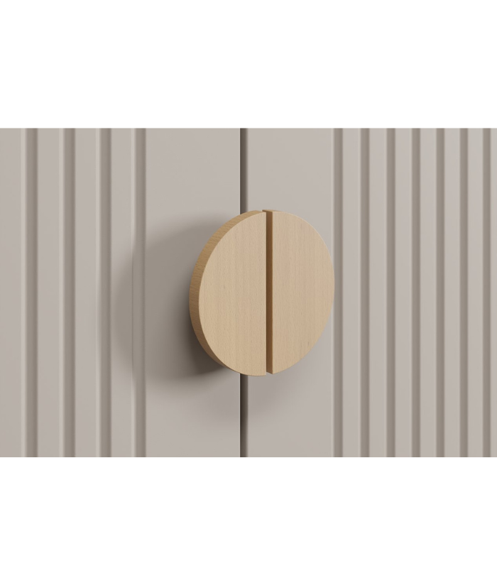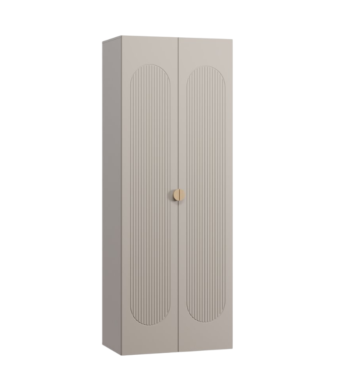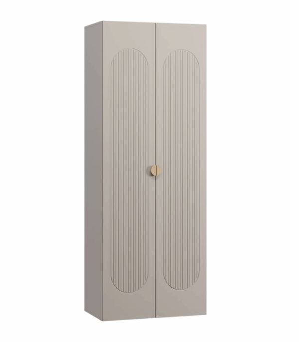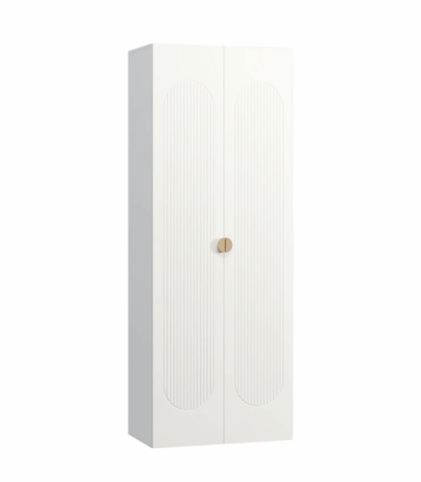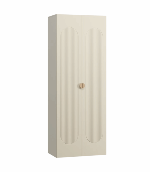 Chất liệu MDF phủ melamine chống ẩm giúp tủ bền màu, chống mối mọt và dễ dàng vệ sinh. Thiết kế có vòm cánh bo cong nhẹ kết hợp đường rãnh dọc tinh tế tạo hiệu ứng mềm mại, hiện đại. Tay nắm gỗ tròn đồng điệu với sắc nâu nhẹ của tủ, tôn lên nét tự nhiên và hài hòa.Không gian bên trong được chia khoa học, phù hợp cho cả đồ treo và gấp.