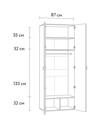 Kích thước Rộng 90cm x Sâu 52cm x Cao 242cm, gọn gàng nhưng vẫn đáp ứng tốt nhu cầu lưu trữ.