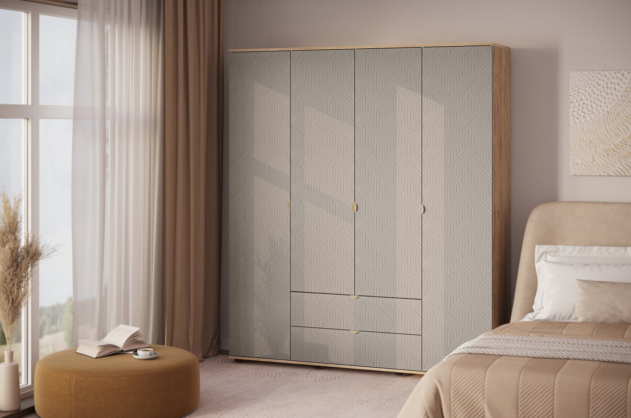 Kích thước 185x50x215 cm tối ưu cho phòng rộng, cung cấp không gian lưu trữ thoải mái cho gia đình. Thiết kế gồm 4 cánh tiện dụng, giúp sắp xếp và lấy quần áo nhanh chóng.