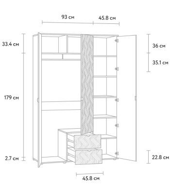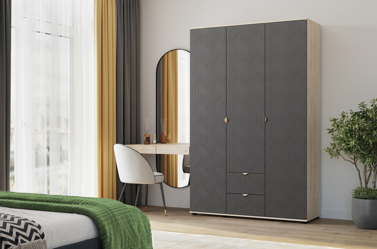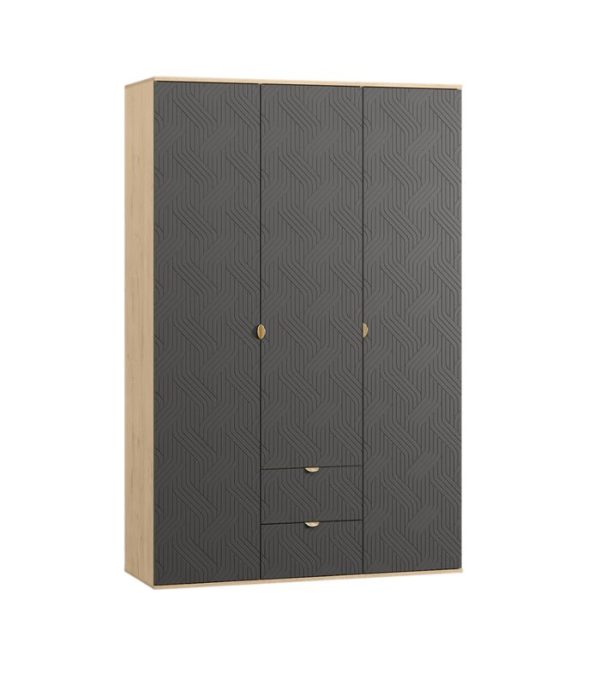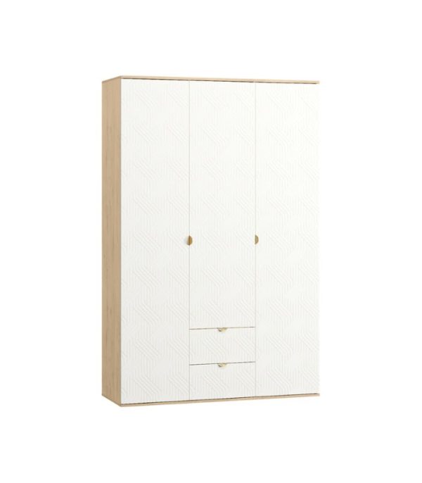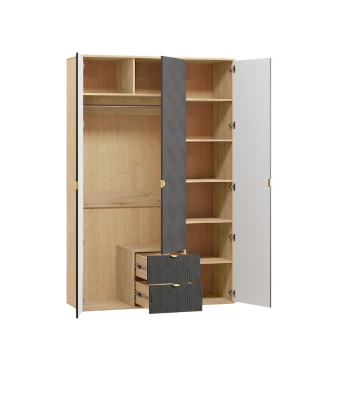 Kích thước 139x50x215 cm phù hợp cho nhiều không gian, vừa tiết kiệm diện tích vừa đảm bảo sức chứa rộng rãi. Thiết kế gồm 3 cánh tiện lợi, bố cục thông minh đáp ứng nhu cầu lưu trữ đa dạng. Cánh ở giữa có thêm 2 ngăn kéo ở phần dưới, lý tưởng để lưu trữ phụ kiện, đồ gấp hoặc vật dụng cá nhân. Phần bên trong cánh trái và cánh giữa được gộp lại thành khu vực treo quần áo rộng rãi, thuận tiện cho áo khoác, váy và quần dài. Phía trên có 2 kệ đựng đồ, phù hợp để cất chăn mỏng, túi xách hoặc hộp lưu trữ.