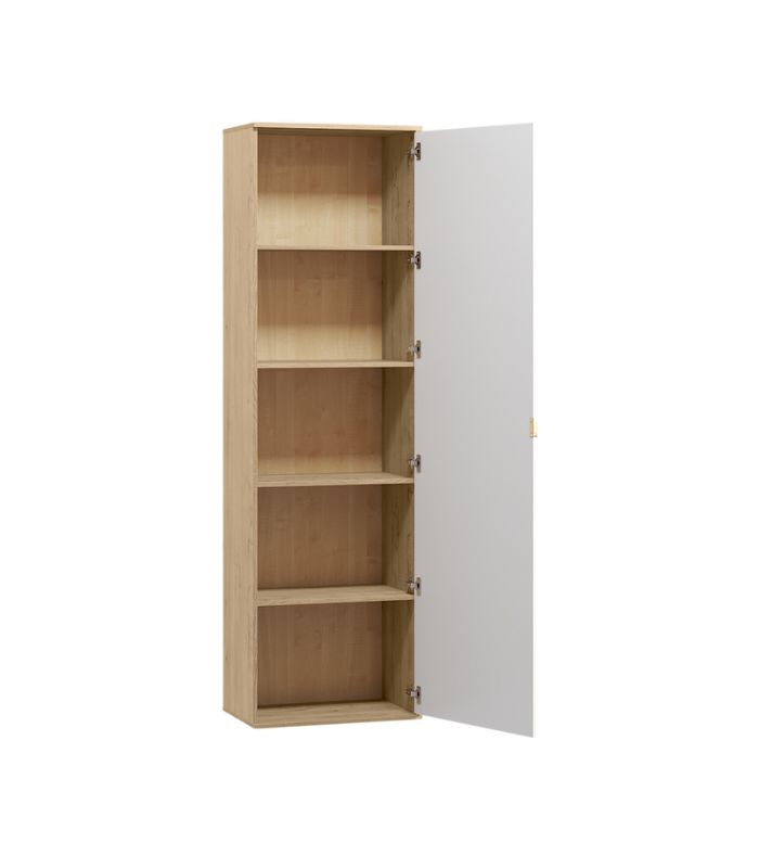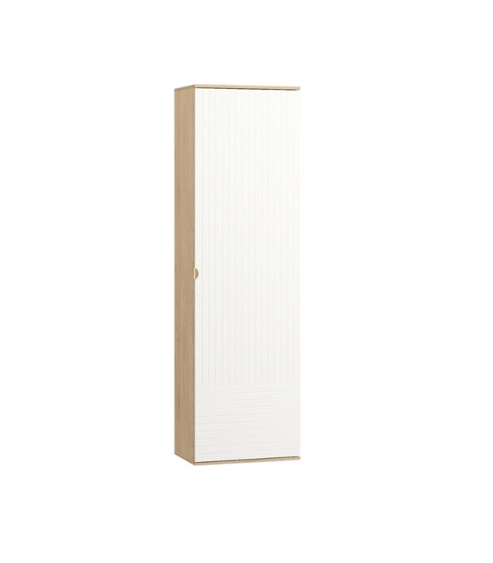 Kích thước tủ 63x40x214 phù hợp mọi loại phòng ngủ. Thiết kế 1 cánh giúp tủ trông thanh thoát và gọn gàng. Bên trong tủ chia thành nhiều ngăn kệ tiện dụng. Các ngăn giúp bố trí đồ đạc ngăn nắp và dễ tìm. Mẫu tủ tối ưu tốt không gian lưu trữ mà không chiếm diện tích. Mặt ngoài của tủ được trang trí hoa văn tinh tế. Các họa tiết làm nổi bật vẻ đẹp hiện đại của sản phẩm. Tông trắng mang lại cảm giác sạch sẽ và rộng rãi.