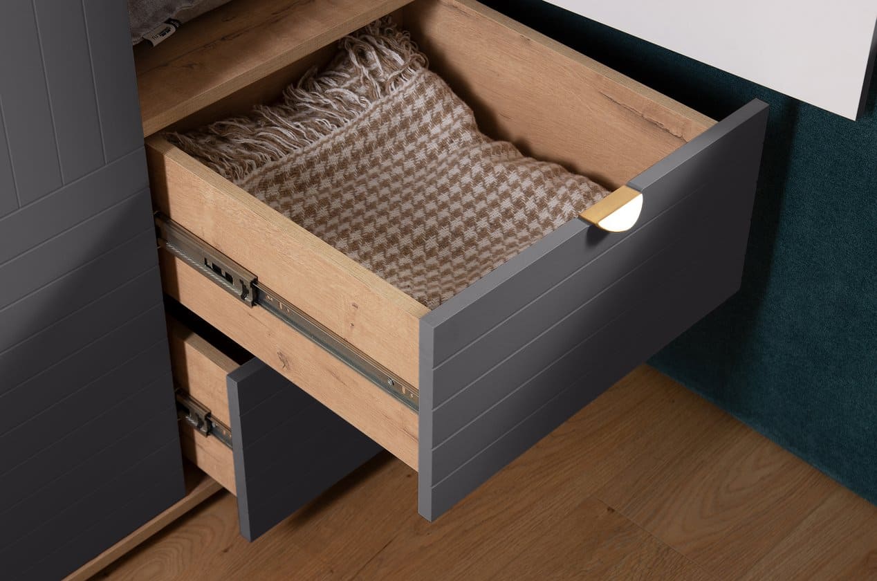 Màu Xám Chì trung tính, hiện đại, dễ phối hợp với nhiều tông màu nội thất, mang đến sự hài hòa và thanh lịch cho căn phòng. Bề mặt tủ chống thấm, chống bám bụi, vệ sinh nhanh chóng. Thiết kế tối giản nhưng sang trọng, tủ vừa là nơi lưu trữ tiện dụng, vừa là điểm nhấn trang trí cho phòng ngủ. Có thể kết hợp với các sản phẩm khác trong dòng Mont Blanc Line để tạo hệ thống lưu trữ đồng bộ.