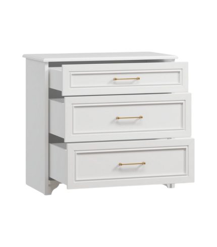 Tay nắm kim loại ánh bạc kết hợp cùng đường nét vuông vức tạo nên tổng thể hài hòa, sang trọng. Các chi tiết bản lề, ray kéo đều đạt chuẩn chất lượng, vận hành êm ái và chắc chắn.