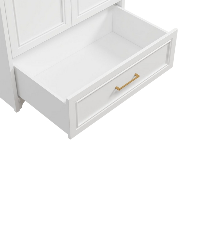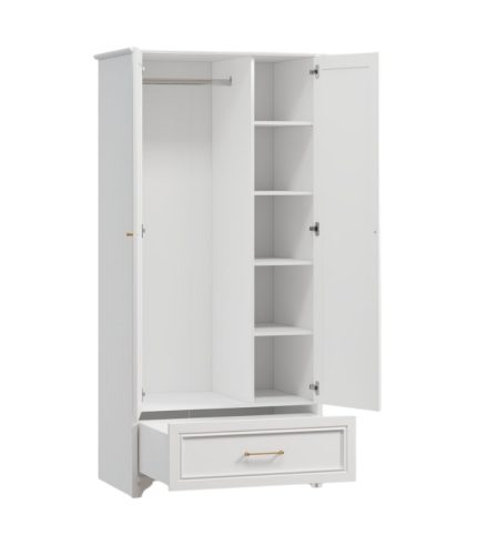 Thiết kế gồm hai khoang chính: một bên treo đồ rộng rãi, một bên chia tầng kèm ngăn kéo phía dưới. Bố cục hợp lý giúp người dùng dễ dàng phân loại quần áo, phụ kiện và giữ cho phòng ngủ luôn gọn gàng.