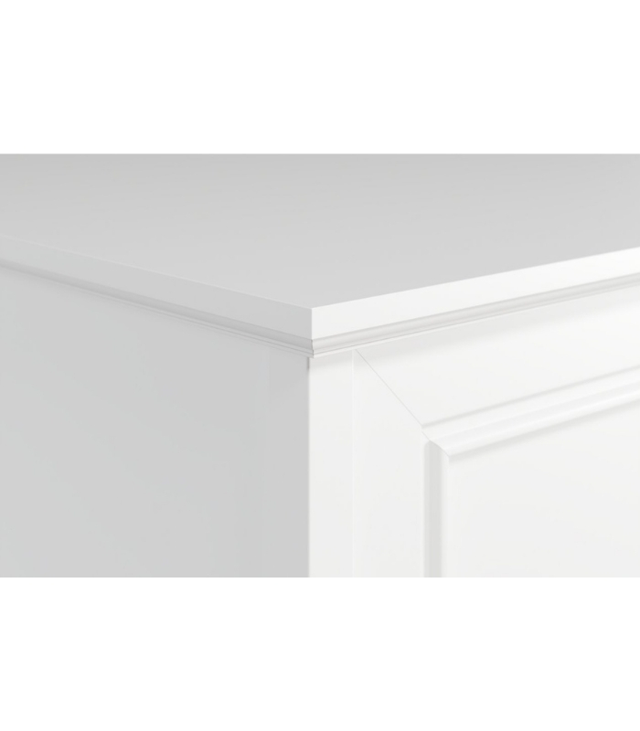 Chất liệu MDF phủ melamine chống ẩm dày 17mm đảm bảo độ bền cao, chống cong vênh và phù hợp với khí hậu nóng ẩm. Cánh tủ sơn PU một mặt có họa tiết chỉ phào tinh tế, dễ vệ sinh và giữ màu sắc ổn định theo thời gian.