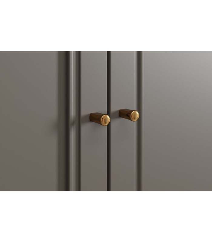 Tay nắm kim loại ánh đen kết hợp cùng đường nét vuông vức tạo nên tổng thể cá tính nhưng vẫn sang trọng. Các chi tiết bản lề, ray kéo được hoàn thiện kỹ lưỡng, vận hành mượt mà.
