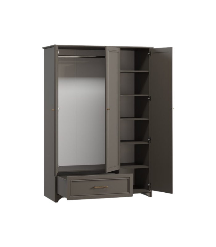 Thiết kế 3 cánh rộng rãi giúp tối ưu hóa khả năng lưu trữ. Bên trong gồm khoang treo lớn, các tầng kệ và ngăn kéo tiện lợi – đáp ứng đầy đủ nhu cầu sắp xếp quần áo, từ đồ dài đến phụ kiện nhỏ. Tủ phù hợp cho phòng ngủ lớn hoặc người dùng có nhiều đồ cần phân loại.