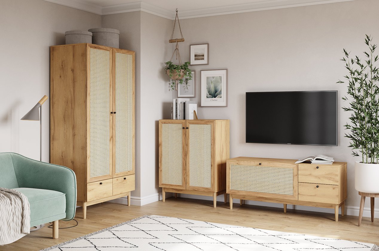 Sản phẩm nổi bật với sự kết hợp tinh tế giữa vân gỗ tự nhiên và chi tiết lưới mắt cáo, mang lại cảm giác ấm áp, gần gũi nhưng vẫn sang trọng. Tủ được chế tác từ gỗ MDF dày 17mm phủ Melamine chống ẩm, bề mặt mịn màng, chống trầy xước nhẹ và dễ vệ sinh. Các cạnh dán chỉ PVC tỉ mỉ bởi thợ lành nghề, tăng độ bền và hoàn thiện sắc nét.