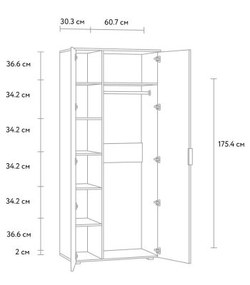 Không gian lưu trữ được tối ưu: Cánh trái với nhiều ngăn kệ nhỏ để cất đồ gấp ngăn nắp. Cánh phải là khu vực treo quần áo tiện lợi, giúp trang phục luôn gọn gàng, dễ quan sát.