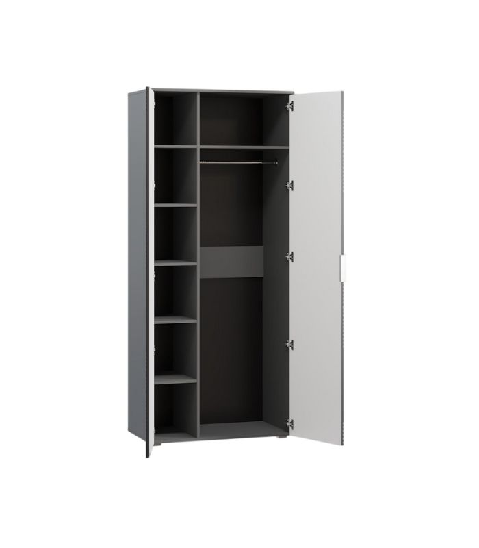 Tủ Quần Áo Shelton Xám Chì – 2 mang phong cách hiện đại và mạnh mẽ, phù hợp với phòng ngủ có tông lạnh hoặc phong cách tối giản.