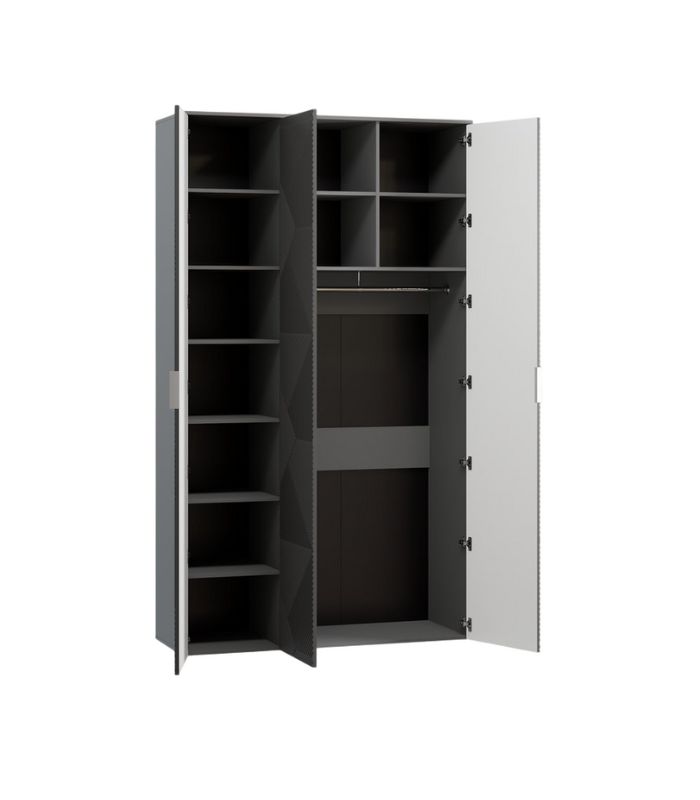 Tủ Quần Áo Shelton Xám Chì – 3.1 là lựa chọn hoàn hảo cho người thích không gian có chiều sâu, cá tính nhưng vẫn gọn gàng và tinh tế.