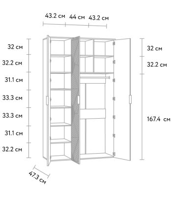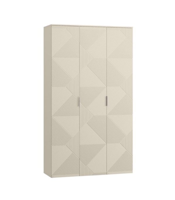 Kích thước 137x50x240cm mang nét uyển chuyển và cao ráo, tạo điểm nhấn mạnh mẽ cho căn phòng. Thiết kế tủ gồm 3 cánh, bố trí hoàn hảo để tối ưu công năng lưu trữ. Cánh trái là hệ thống ngăn kệ nhiều tầng, thích hợp cho quần áo gấp, khăn, túi xách hoặc phụ kiện. Hai cánh còn lại mở ra khu vực treo đồ rộng rãi, giữ áo dài, váy dài, vest… luôn thẳng phẳng và gọn gàng.