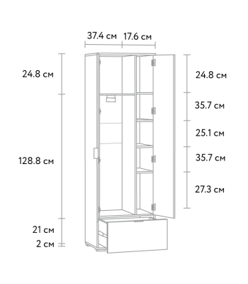 Cánh tủ mở rộng với bản lề chắc chắn, đóng – mở êm ái, không gây tiếng ồn khi sử dụng. Thiết kế dáng tủ cao, chiếm ít diện tích sàn nhưng chứa được nhiều đồ, rất phù hợp cho phòng ngủ nhỏ hoặc căn hộ có không gian hạn chế. Các góc cạnh tủ được bo mềm mại, đảm bảo an toàn trong quá trình sử dụng, đặc biệt với gia đình có trẻ nhỏ.