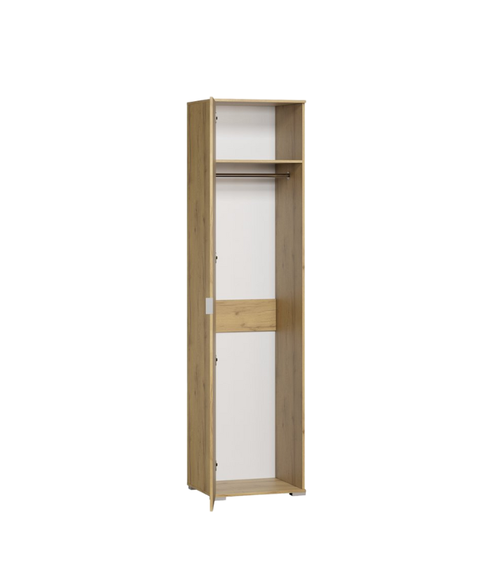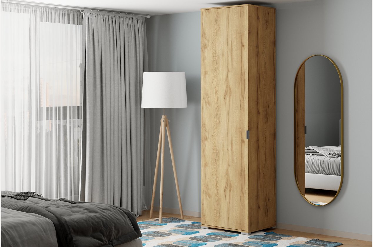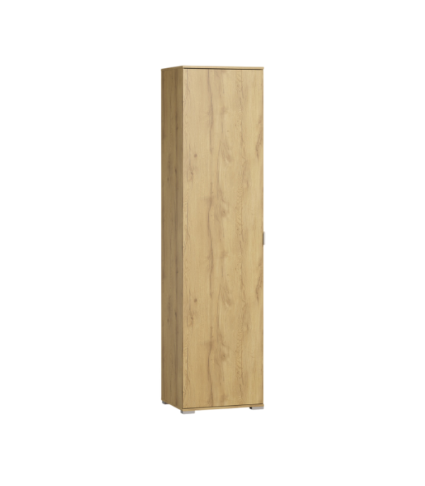 Vân gỗ sáng kết hợp với tông nâu nhạt tạo cảm giác gần gũi và tinh tế, mang hơi thở thiên nhiên vào không gian sống. Thiết kế cao, đứng với một cánh mở giúp tận dụng tối đa diện tích theo chiều dọc, phù hợp với phòng ngủ nhỏ hoặc căn hộ có không gian hạn chế. Kiểu dáng gọn gàng nhưng tinh tế, mang đến sự hài hòa và tiện nghi cho căn phòng.