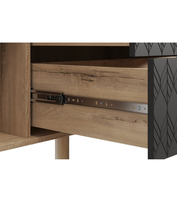 Sản phẩm được sản xuất từ ván MDF chống ẩm phủ melamine, cánh sơn PU hoàn thiện một mặt với họa tiết lá đặc trưng. Nhờ sử dụng gỗ MDF dày 17mm, tủ có khả năng chịu lực tốt, hạn chế cong vênh và giúp cửa vận hành ổn định lâu dài.