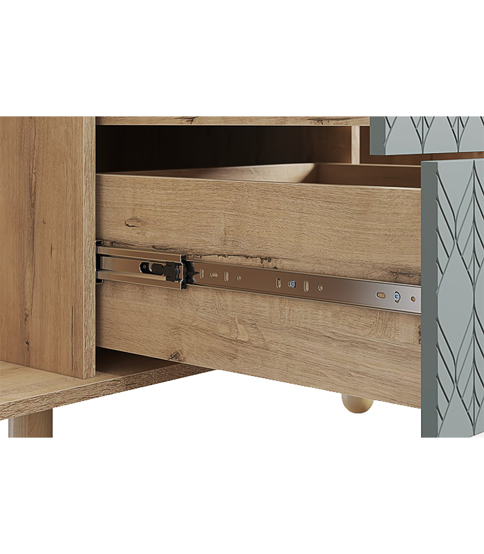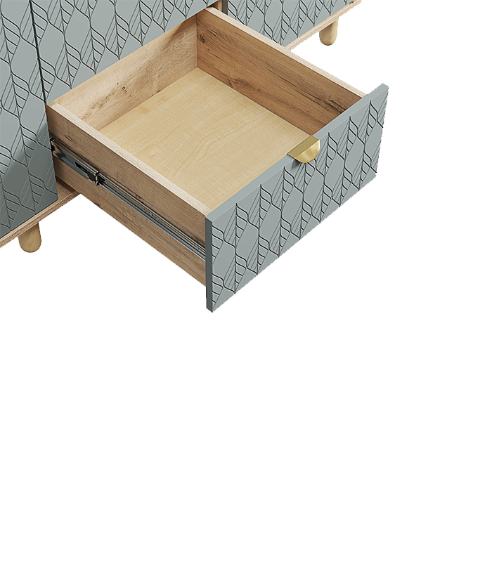 Vật liệu chính là ván MDF chống ẩm phủ melamine – dày dặn, ổn định, chống co ngót, cong vênh. Cánh tủ sơn PU 1 mặt được hoàn thiện kỹ lưỡng, bề mặt nhẵn, màu sắc đều và bền theo thời gian.