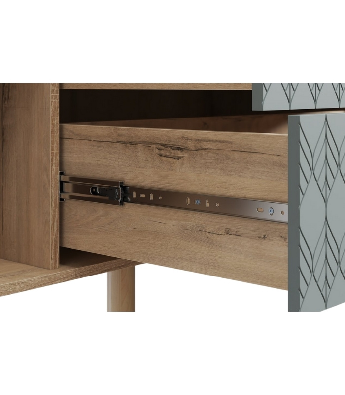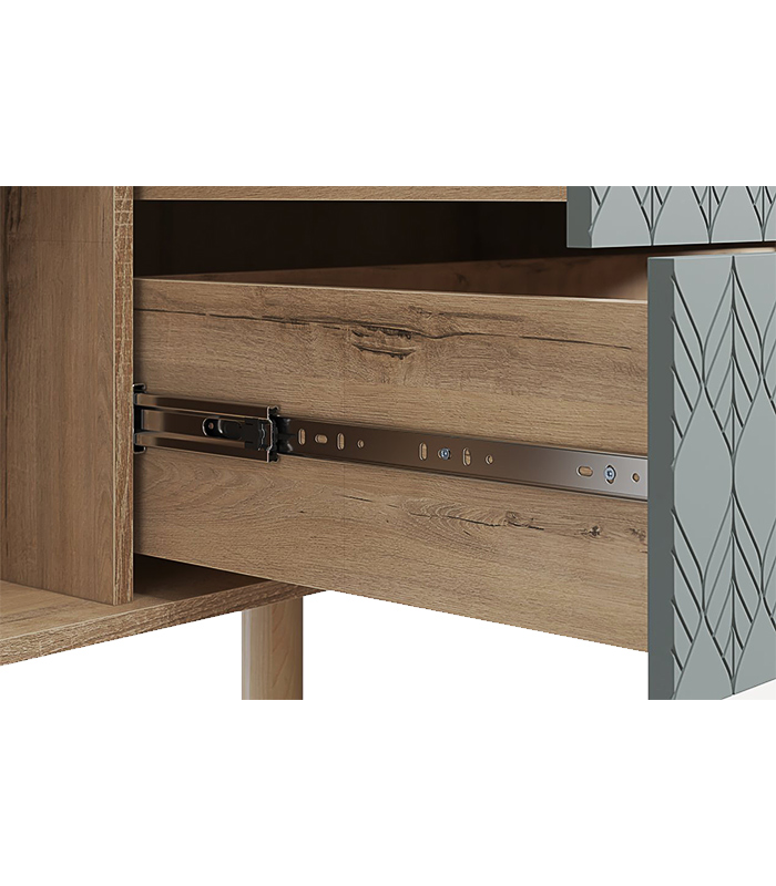 Sản phẩm được làm từ ván MDF chống ẩm phủ melamine, kết hợp cánh sơn PU hoàn thiện một mặt với hiệu ứng lá trang trí tinh tế. Độ dày 17mm của ván giúp tăng độ chắc chắn, hạn chế cong vênh và co ngót. Nhờ quy trình sản xuất chuyên nghiệp tại xưởng TinHome, từng đường nét đều được hoàn thiện tỉ mỉ, mang lại cảm giác liền mạch và tinh tế.