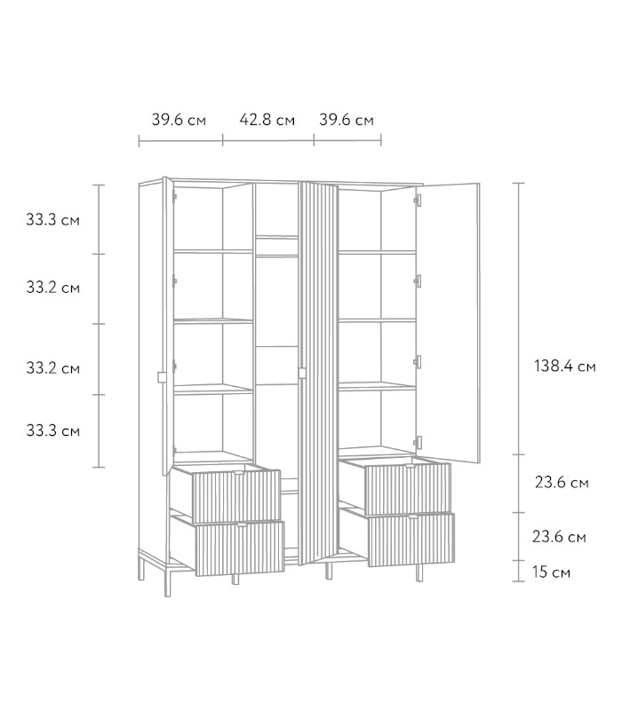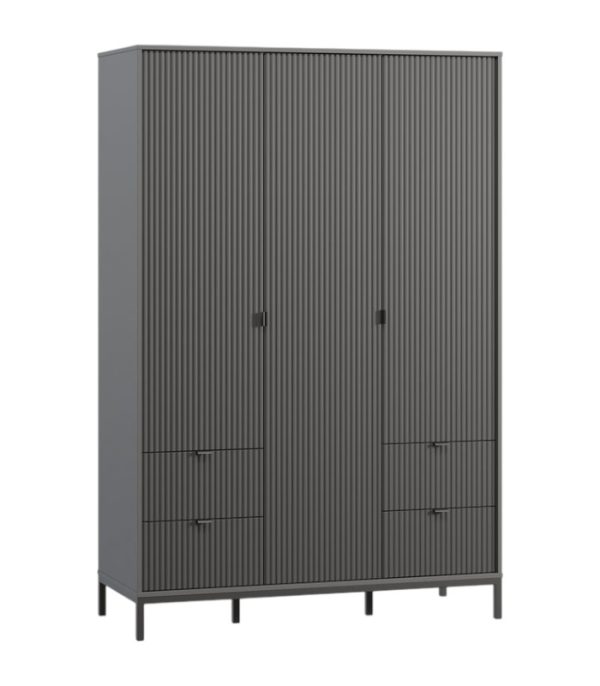Với kích thước 137x55x205 cm, tủ được thiết kế 3 cánh mở thông minh, bên trong có 10 ngăn lưu trữ và 1 ngăn treo quần áo, cùng 4 ngăn kéo 2 bên tiện lợi. Thiết kế này giúp bạn sắp xếp quần áo, phụ kiện và đồ dùng cá nhân một cách khoa học, tối ưu hóa không gian lưu trữ mà vẫn giữ căn phòng gọn gàng, ngăn nắp và thanh thoát.